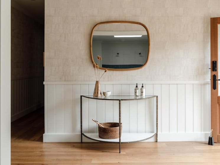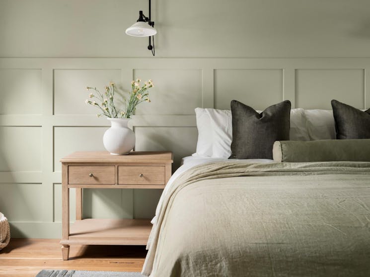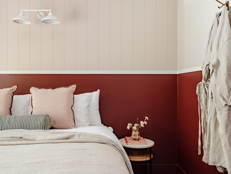 Featuring broad, wrap-around verandahs, the cottage welcomes you to its high ceilings, timber polished floorboards and exposed brick walls. A crisp white-on white aesthetic is a breath of fresh air, warmed with textures of wall hangings, bed linen and fully upholstered furniture. You’ll find new and old pieces, comfy chairs to sit by the fire in and long timber tables inviting you to sit a while, unwind from the demands of everyday life and reconnect with those you are with.